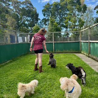 For our big dogs, afternoons are spent rotating through our eight large grassy paddocks. Whether they prefer sniffing, exploring, playing with friends, or chasing toys, each dog gets a mix of outdoor adventures and quiet indoor breaks. Our goal is always the same: happy, fulfilled dogs who feel like theyāre on their own little holiday.